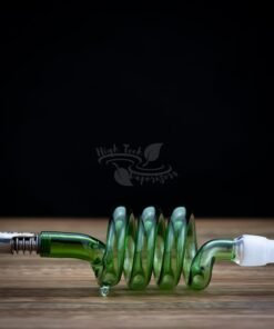 Twist up your Dynavap session with this glass RattleSnake stem which features a small airport, 10mm and 14mm connection. It offers a simple yet smooth experience when paired with a dynavap tip. and your favourite 10mm or 14mm bubbler.