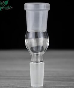 One end of the adapter has a 14mm male glass connection while the other end holds a 18mm female connection.