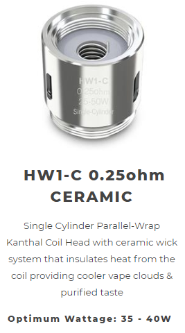 HW1-C Ceramic 0.25ohm: 25 – 50W, best at 35 – 40W