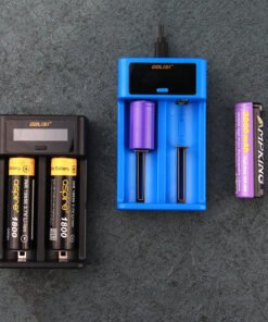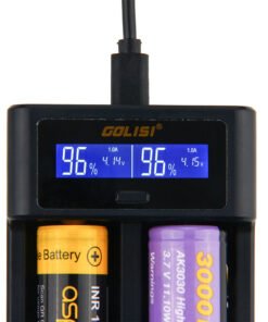 The Golisi I2 is a compact mini smart charge. It has a USB power port with optional 0.5A, 1A and 2A output. And it’s compatible with batteries length ranging 32 – 70mm. And the LCD displays charging info in detail. You can charge two batteries at the same time. 2 colors.
