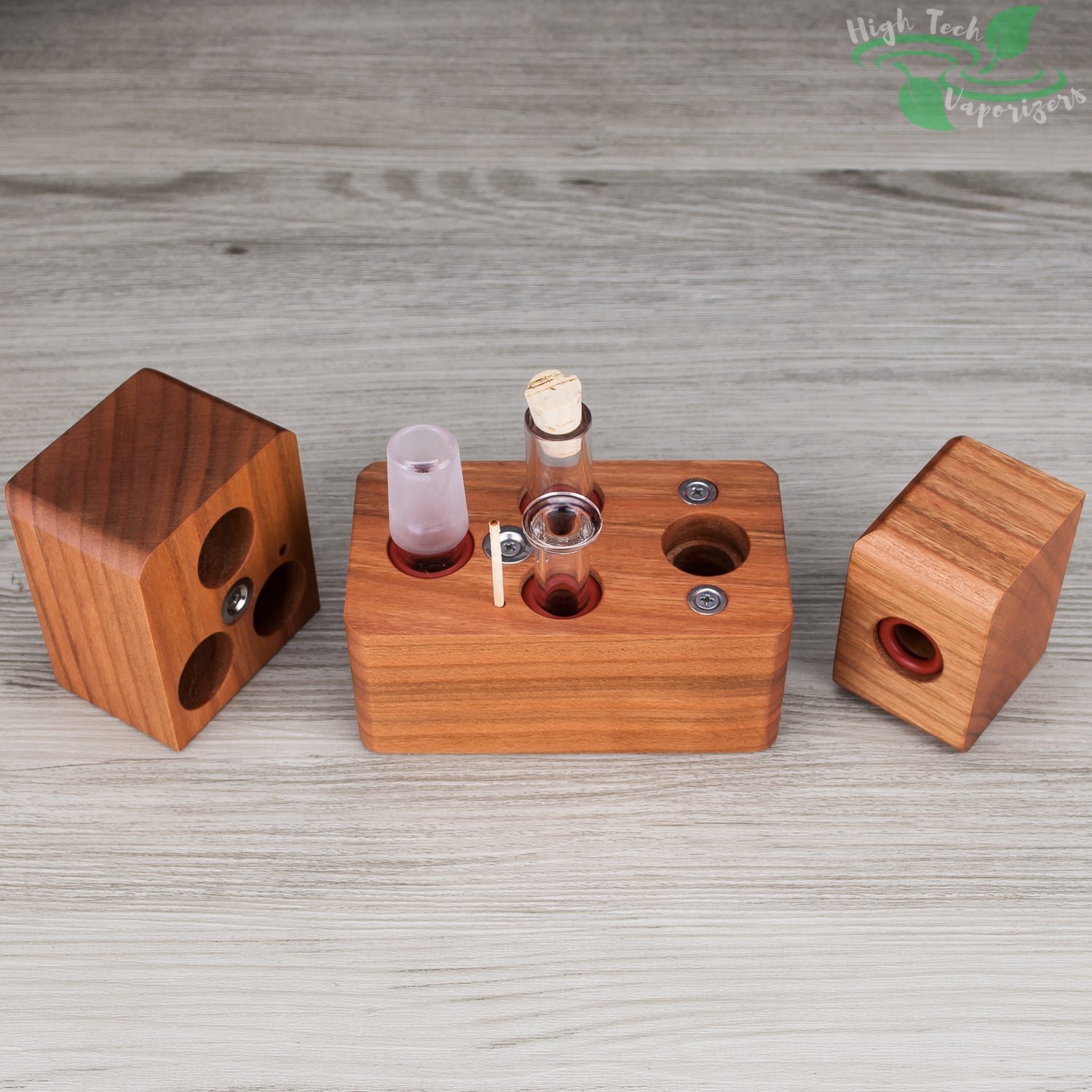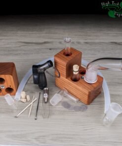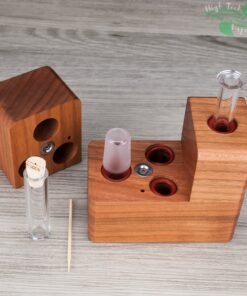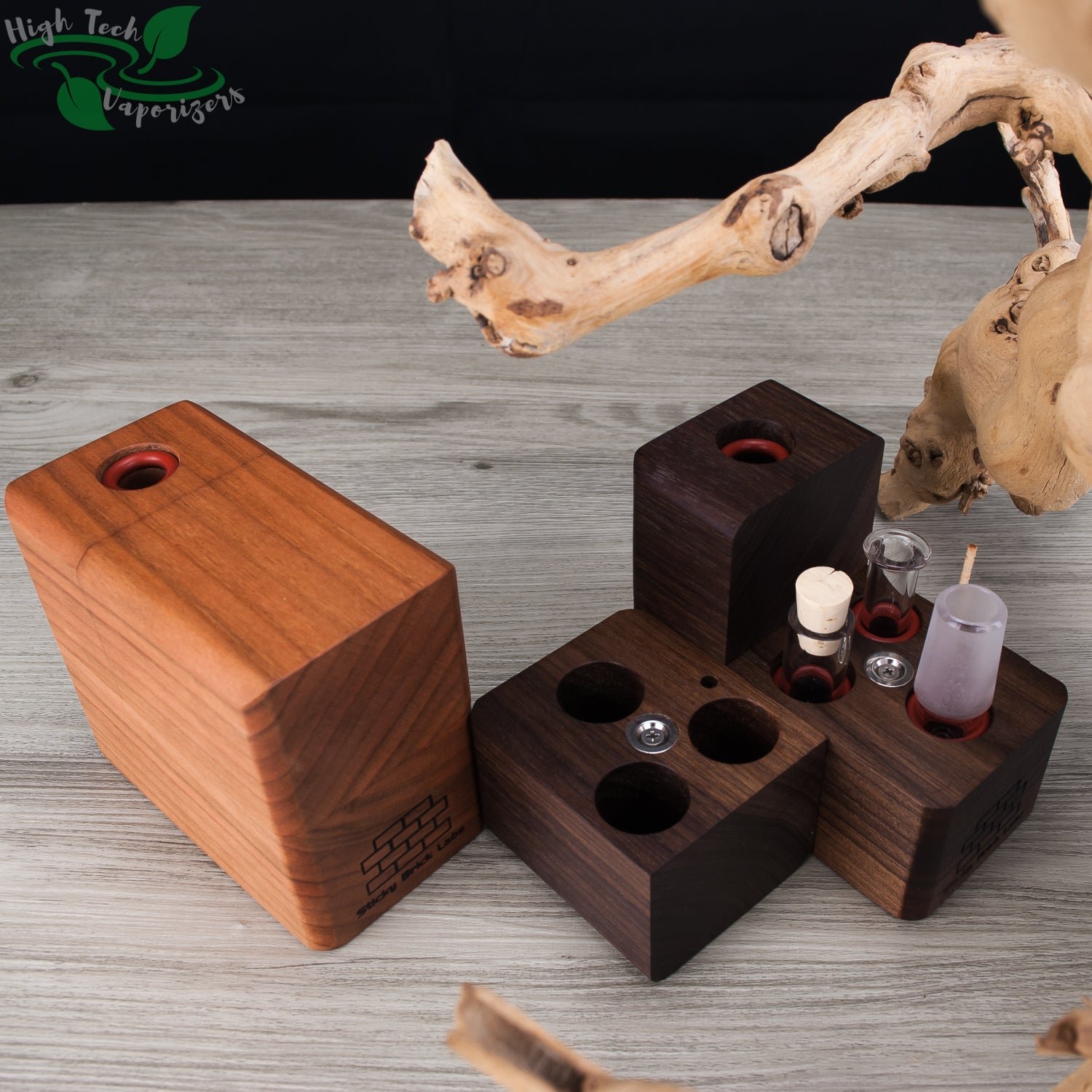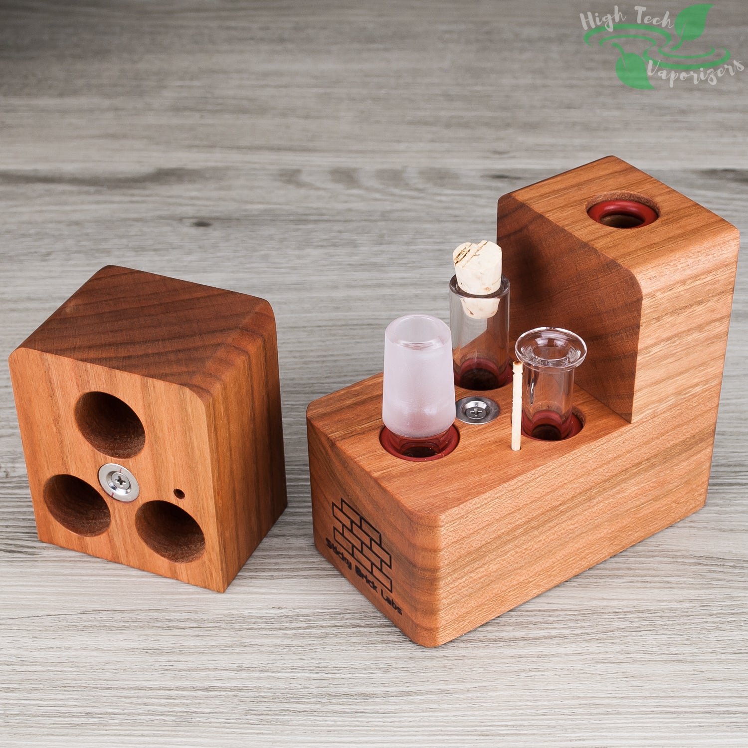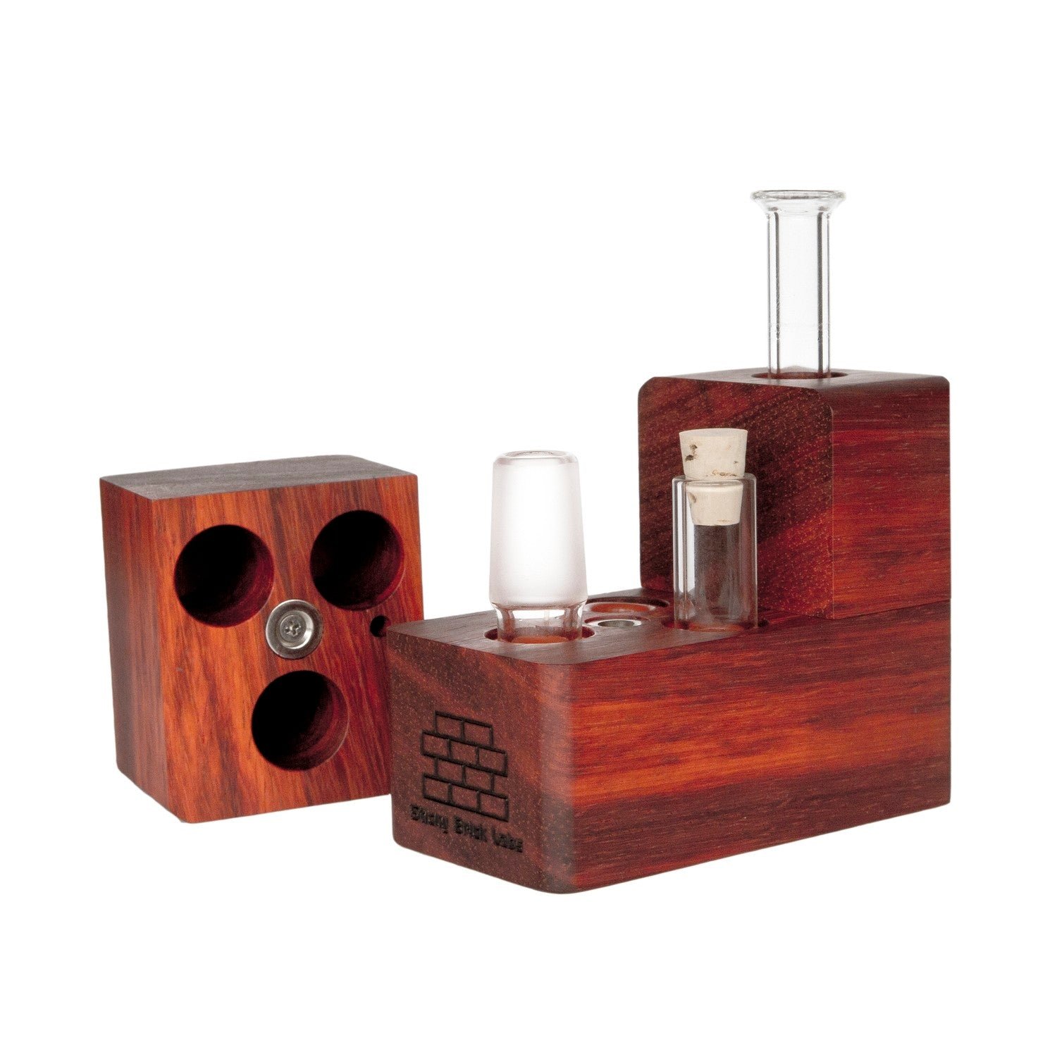 The HydroBrick Maxx by Sticky Brick Labs is the most advanced and versatile Sticky Brick to date. It is a semi portable desktop extraction device that has most of what you need self contained inside the hardwood body of the HydroBrick Maxx. Inside the max there is a wooden pick, flame intake and corked glass tube to store your herb.