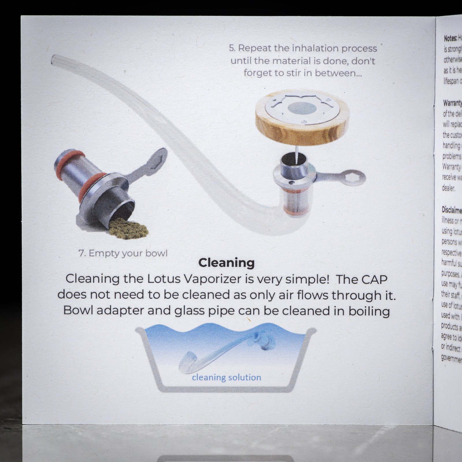 To the right you can see everything that goes into the Lotus. There really isn’t much that can go wrong with your Lotus but parts like the hot plate, screens and o-rings can be replaced if needed.
