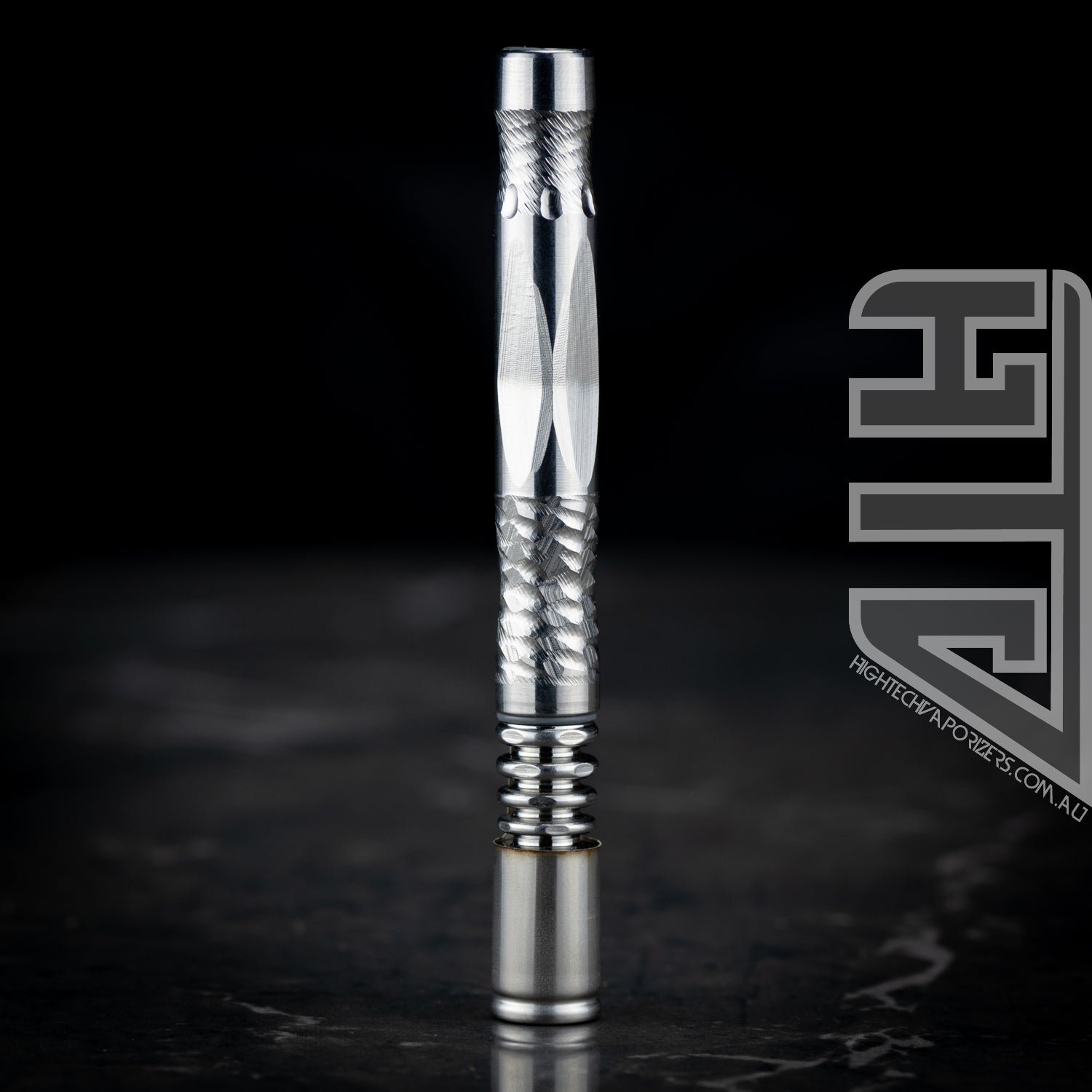 Let us begin with the tip. A Septa serrated fully faceted extraction chamber facilitates loading and sits atop an incremental fin profile. Contained inside the extraction chamber is our two position Adjust-a-Bowl feature that allows you to adjust the size of the dosing chamber to your needs.
